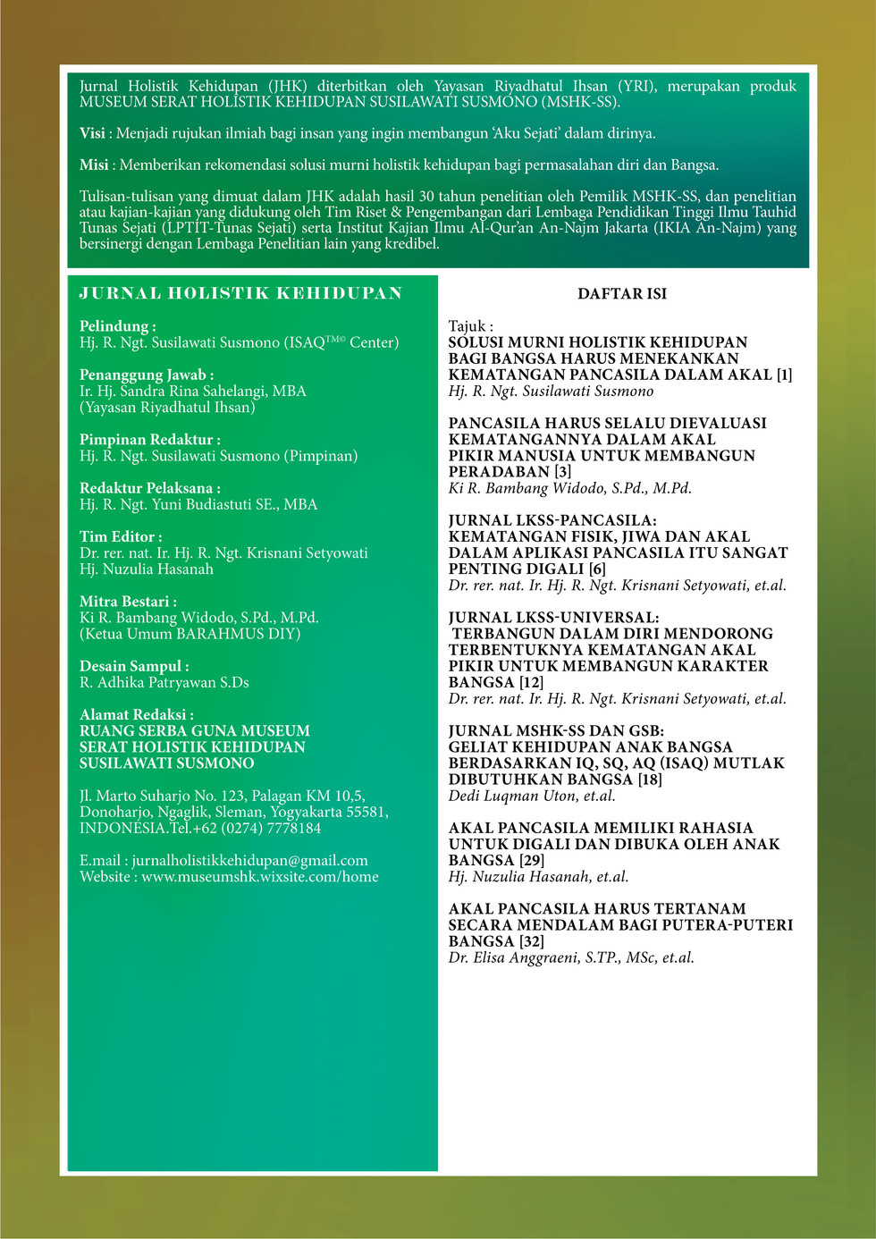 SOLUSI MURNI HOLISTIK KEHIDUPAN BAGI BANGSA HARUS MENEKANKAN KEMATANGAN PANCASILA DALAM AKAL