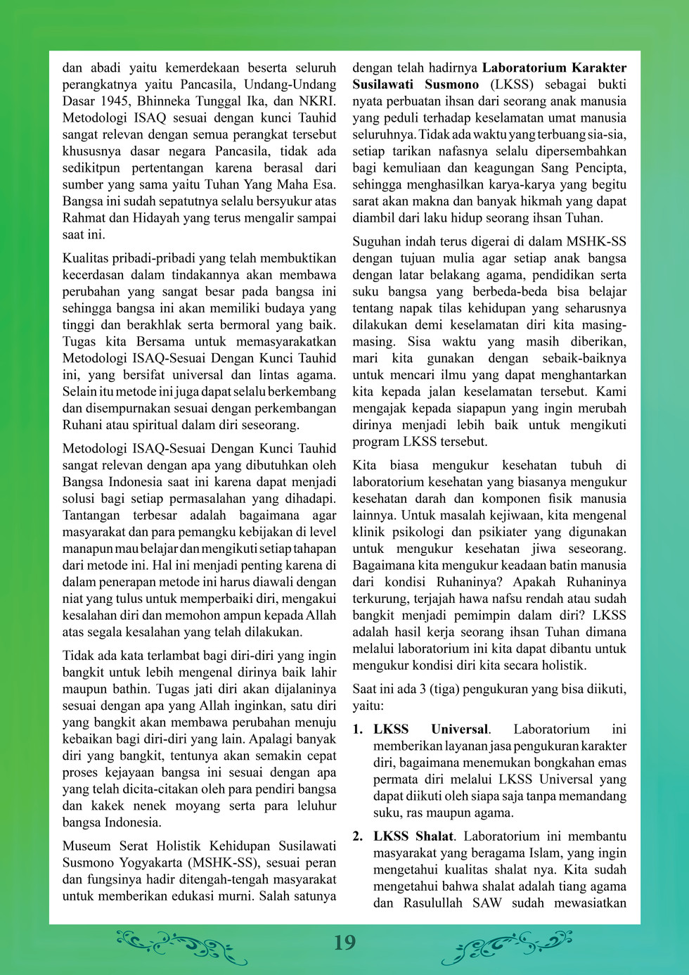 Tajuk ini menekankan kematangan Pancasila dalam jiwa, tentu yang matang secara jiwa adalah seorang yang sudah dewasa secara usia. Artinya Pancasila secara holistik (menyeluruh) dapat dijalani dengan baik. Hal ini adalah merupakan gabungan 5 (lima) kematangan yang dilebur menjadi satu kesatuan, yaitu matang secara raga, jiwa, akal, hati, ruhani lalu dapat dilebur menjadi satu kesatuan dalam wujud Perbuatan Holistik (Menyeluruh).