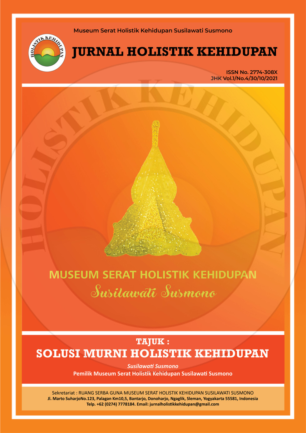 Tajuk Jurnal Holistik Kehidupan (JHK) Edisi 4 masih merujuk JHK Edisi 1, 2 dan 3 yaitu “Solusi Murni Holistik Kehidupan”, sebagai tema besar yang kami usung, yakni ingin memberi solusi bagi setiap diri agar menemukan dirinya yang sejati. Hal-hal terpenting yang sangat berkaitan dengan seluruh komponen bangsa sudah dijelaskan oleh Pendiri Bangsa dan sudah termaktub dalam UUD 1945 guna meraih harkat martabat bangsa Indonesia.